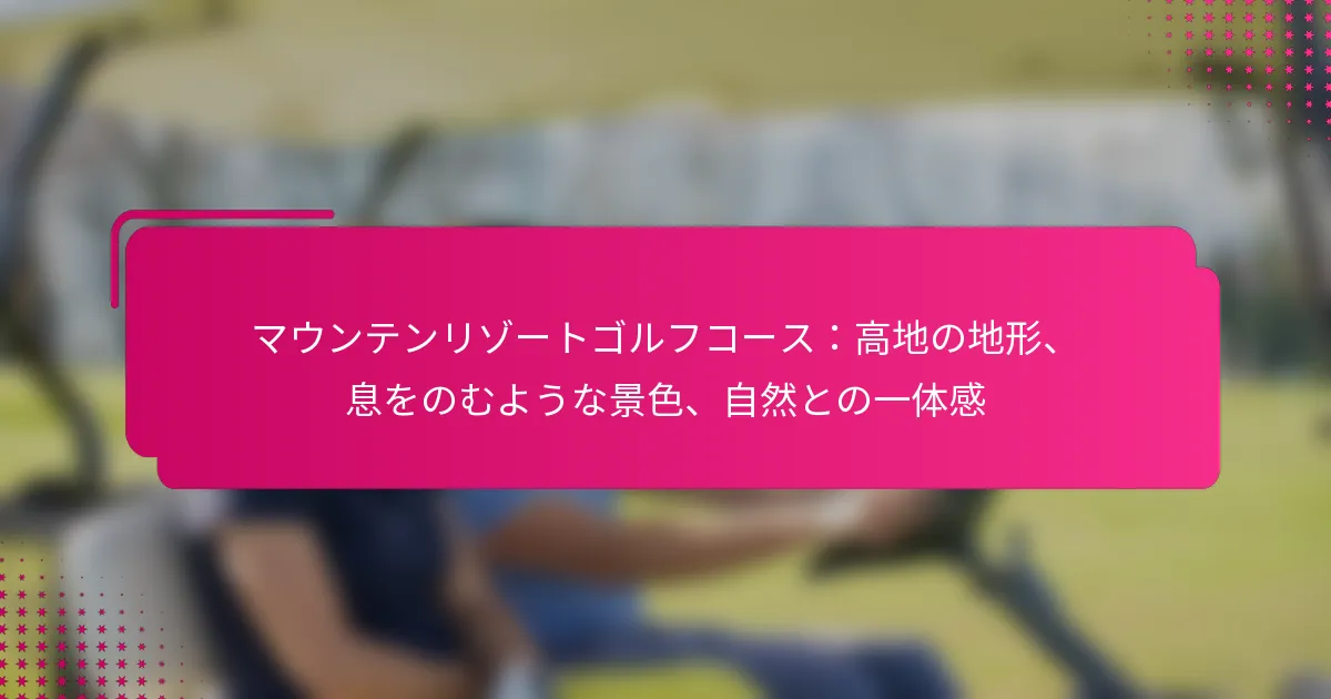 山岳リゾートのゴルフコースは、高地の地形、素晴らしいパノラマビュー、自然の風景と統合されたユニークなデザインが特徴です。これらのコースは、ゴルファーに自然の中での没入体験を提供し、地形による独特の挑戦をもたらします。